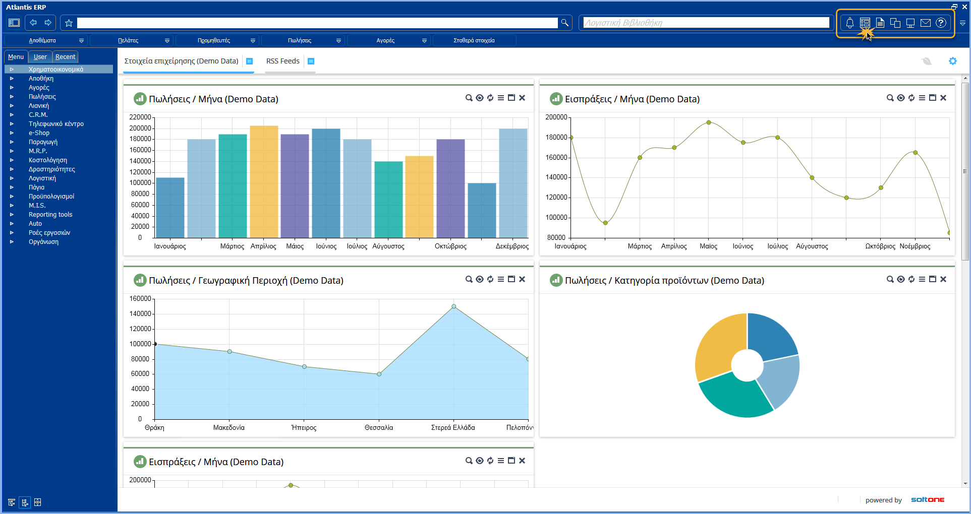 Ενσωματώνοντας πλούσια λειτουργικότητα και εξειδικευμένα εργαλεία που υποστηρίζουν τις απαιτήσεις κάθε κλάδου της αγοράς, το Atlantis ERP σας επιτρέπει να δείτε πίσω από αριθμούς και δείκτες απόδοσης, αποκαλύπτοντας την ολοκληρωμένη εικόνα όλων των λειτουργιών σας.